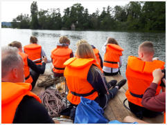 Verbringen Sie mit Ihren Mitarbeitern einen Tag gemeinsam in der Natur. Der aktive Teil Ihres Teamtages startet mit einem kleinen Teamspiel als ‚Warm-up‘. Nach einem Fruehstueckssnack bauen Sie unter fachkundiger Anleitung mit vereinten Kraeften ein Floss und schippern ueber einen See zu einer idyllisch gelegenen Fischerei. Auf einem Bootssteg erwartet Sie ein Mittagsimbiss*. Hier ist Zeit zum Verweilen, bevor Sie gut gestaerkt mit Muskelkraft die Rueckfahrt antreten. Wieder festen Boden unter den Fuessen erreichen Sie nach einem kleinen Spaziergang (400m) unser weitlaeufiges und landschaftlich sehr reizvolles Naturcamp. Mit unterhaltsamen Teamuebungen gilt es, so manche Aufgabe in der Gruppe zu loesen. Der Spass kommt dabei garantiert nicht zu kurz. Zudem koennen sich die Teilnehmer bei zahlreichen angeleiteten Aktivitaeten wie z.B. Bogenschiessen, Axtwerfen, Rodeokissen u.a.m. auf dem Campgelaende treiben lassen. Ein umfangreiches Buffet mitten in der Natur sorgt fuer einen gelungenen Abschluss des Tages. *Sehr gern richten wir zur Begruessung ein Fruehstuecksimbiss am Seeufer exklusiv fuer Sie an. In diesem Fall empfehlen wir den Mittagsimbiss zu streichen.