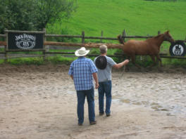 Zu Beginn zeigt Ihnen unser erfahrener Westernreitlehrer im Round-Pen, wie die Kommunikation